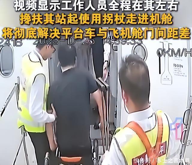 视频画面里,并没有所谓的“冷眼旁观”。我们看到的是,两名地勤人员一路推着郑智化的轮椅,将他送到了升降梯与飞机的连接处。随后,几位空乘人员也赶来帮忙,整个过程显得有条不紊。 郑智化本人,是在众人的搀扶下,自己拄着拐杖站起来,最终顺利登上了飞机。期间,甚至有一位工作人员贴心地蹲下身,帮他把假肢安放进机舱。全程没有任何人表现出不耐烦,更谈不上让他“连滚带爬”。